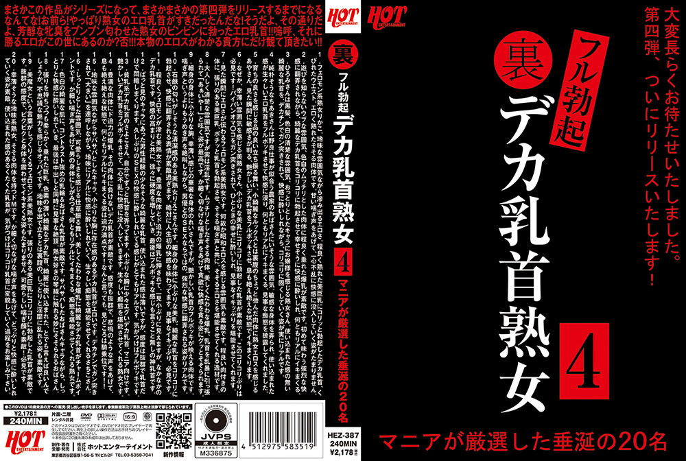 まさかこの作品がシリーズになって第四弾をリリースするまでになるなんてな!お前ら!やっぱり熟女のエロ乳首がすきだったんだな!芳醇な牝臭をプンプン匂わせた熟女のビンビンに勃ったエロ乳首!!嗚呼、それに勝るエロがこの世にあるのか?否!!!本物のエロスがわかる貴方にだけ観て頂きたい!!